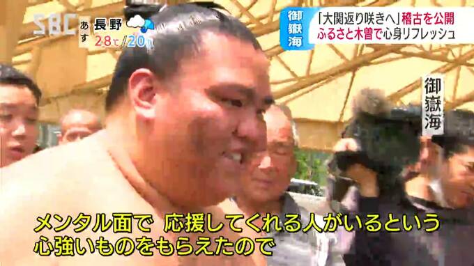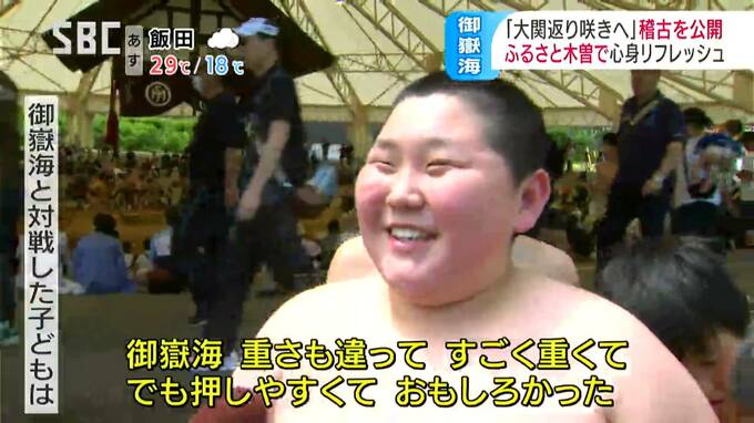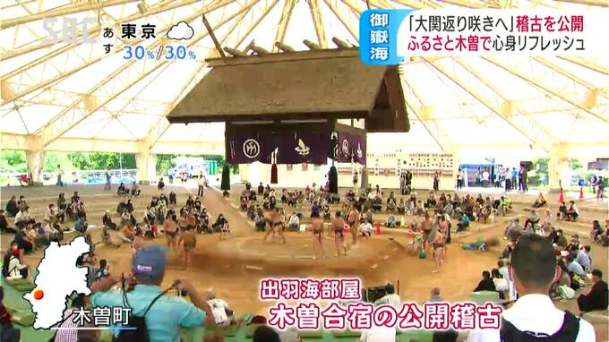 その御嶽海が所属する出羽海(でわのうみ)部屋は、22日から3日間にわたり木曽町で合宿を行い、公開稽古では会場が大きく盛り上がりました。