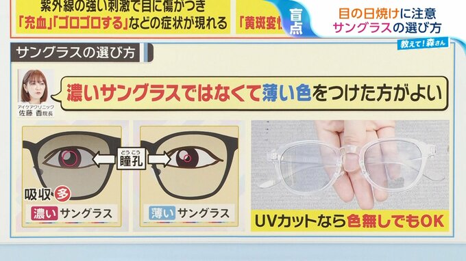 サングラス選びのポイントを、気象予報士の森さんが解説します。