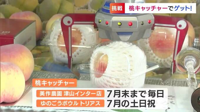 「桃キャッチャー」は美作農園が、去年(2022年)実施した「イチゴキャッチャー」に続く第2弾で、7月末まで実施されています。秋にはぶどうを景品とした第3弾も企画予定だということです。