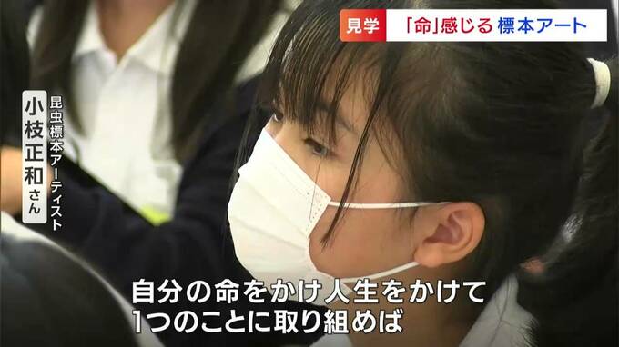 岡山県津山市に、昆虫の標本を使った芸術作品を制作しているアーティストがいます。きょう(26日)、地元の小学生に向けた授業を行いました。伝えたのは懸命に生きる虫に教わったという「逆境に立ち向かって生きる勇気」です。