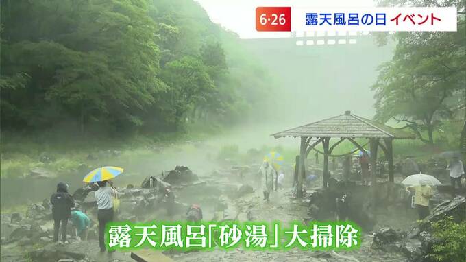 きょう6月26日は、語呂合わせで「露天風呂の日」です。美作三湯の一つ、湯原温泉では、名物露天風呂「砂湯」の大掃除をはじめ、さまざまな催しが行われました。