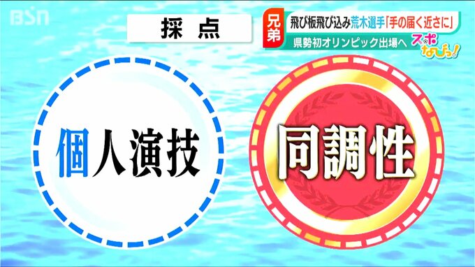 高さや姿勢の美しさが問われる「個人演技」、そしてペアの息が合っているかが問われる「同調性」です。
