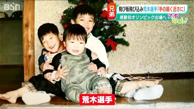 小学1年生のころ、兄・駿図さんの影響で飛び板飛び込みを始めました。