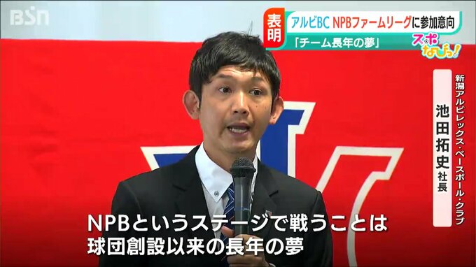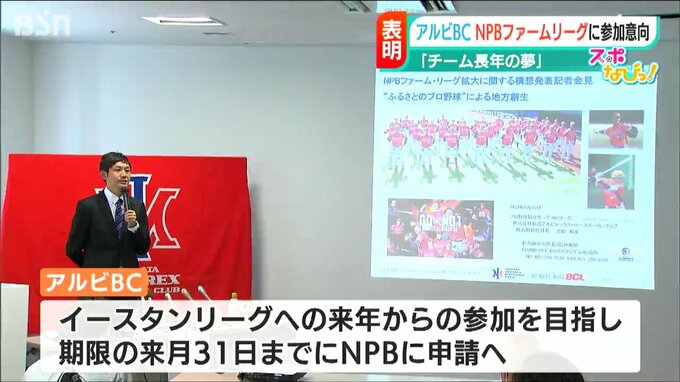 こうした中、NPB=日本野球機構は、来年または再来年から2軍のファームリーグの公式戦に新規参加する球団を公募していて、アルビBCは、DeNAや巨人、楽天などが戦う「イースタンリーグ」への来年からの参加を目指し、期限の来月31日までにNPBに申請する方向です。新しく参加できるチーム数は未定だということです。