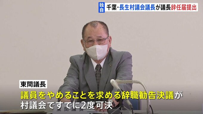 女性職員の首を絞めたなどとして略式命令を受けた千葉県長生村の村議会議長が、議長を辞任する届け出を提出していたことがわかりました。千葉県長生村の村議会の東間永次議長(77)は今年4月、公用車を運転してい…