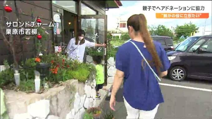 鈴木さん親子は、ヘアドネーションのNPO法人と提携する栗原市内の美容室「サロンドチャーム」を訪れました。