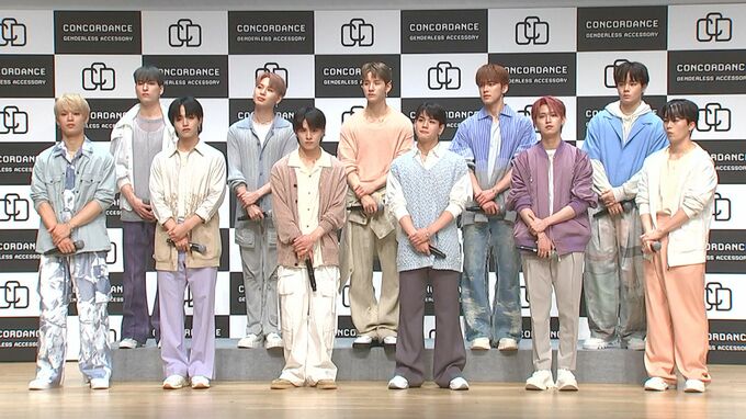 ジュエリーやフレグランスなどのブランドを手がけるエスモードインターナショナルのジェンダーレスアクセサリーブランド「CONCORDANCE」(コンコアダンス)の新CM発表会が行われ、CMに出演するJO1のメンバー11人(大平祥生さん、川尻蓮さん、川西拓実さん、木全翔也さん、金城碧海さん、河野純喜さん、佐藤景瑚さん、白岩瑠姫さん、鶴房汐恩さん、豆原一成さん、與那城奨さん)が登壇しました。