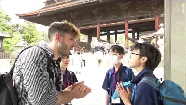 長野市の中学1年生が外国人と善光寺周辺を散策しました。道中は「日本語禁止」!目的は「英語でのコミュニケーション」です。元気よくあいさつするのは長野市立中学校の1年生。70人がグループに分かれて、県内の専…