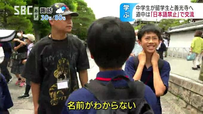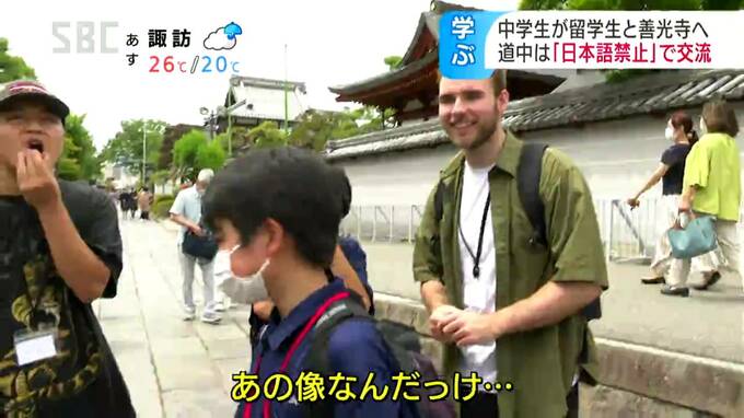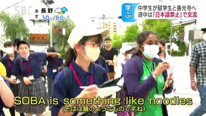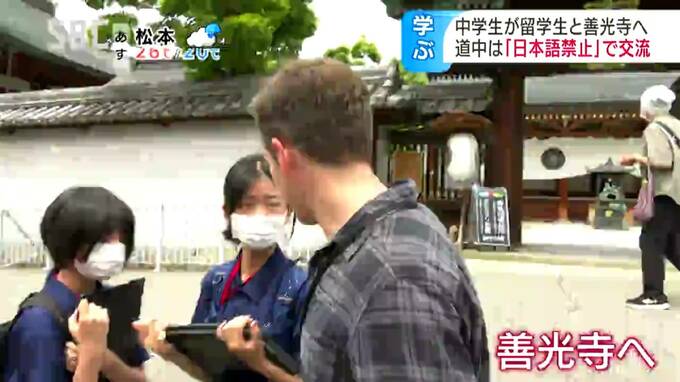 長野市の中学1年生が外国人と善光寺周辺を散策しました。