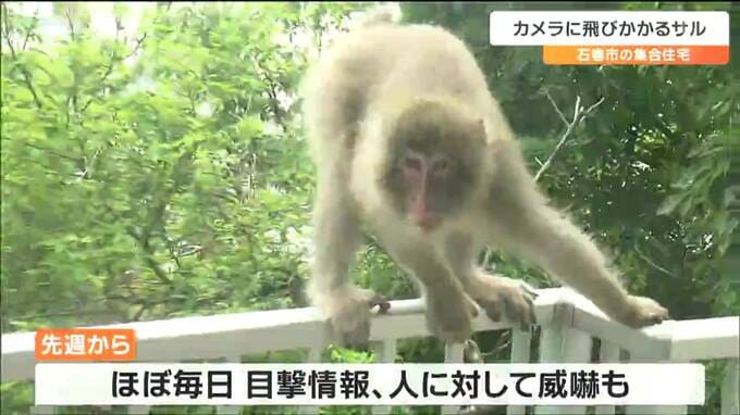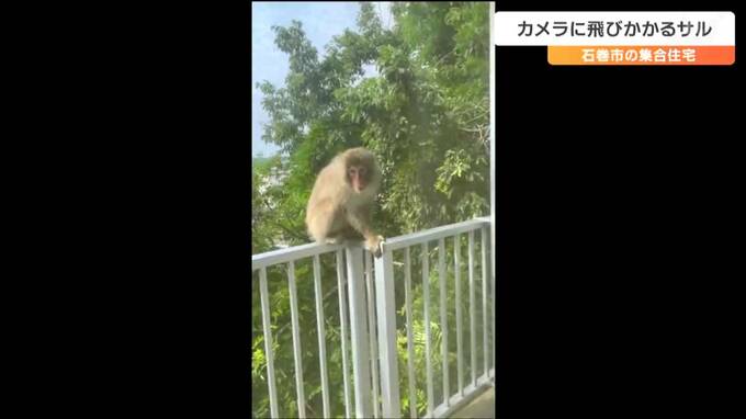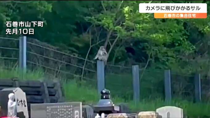 サルの目撃が相次いでいる宮城県石巻市で27日午後、tbcのカメラが1匹のサルの姿を捉えました。サルは、カメラに飛びかかろうとするなどしていて、住民からは不安の声が上がっています。