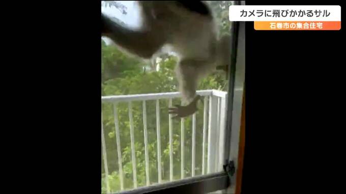 これは、27日午後1時半すぎ、石巻市宜山町の集合住宅で、tbcのカメラがとらえた映像です。サルは、窓にぶつかり家の中には侵入することはできませんでしたが、あやうく襲われるところでした。