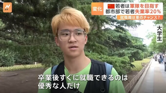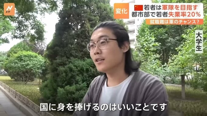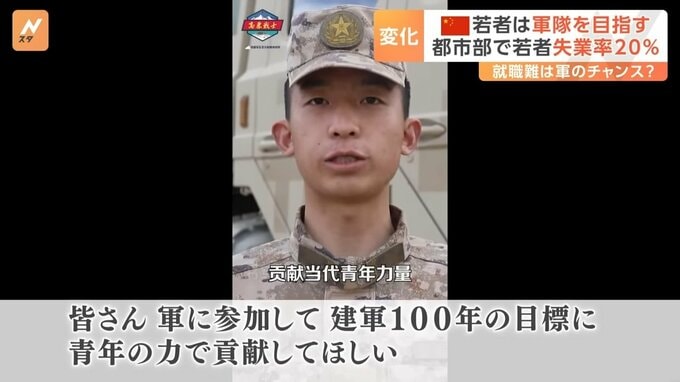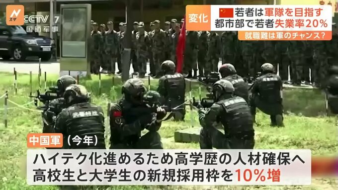 危険が伴うとして、かつては避けられていた若者の軍への入隊。給与の引き上げなど待遇改善も進む中、就職難の大学生と人材確保を進めたい中国軍の思惑が一致した状況が生まれています。