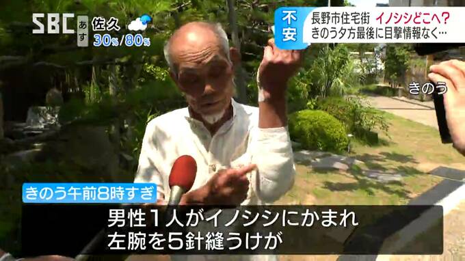 26日の朝8時過ぎには、この住宅から南へ100メートルほど離れた寺で、男性がイノシシにかまれ、左腕を5針縫うケガをしました。