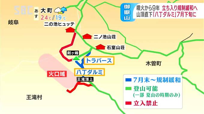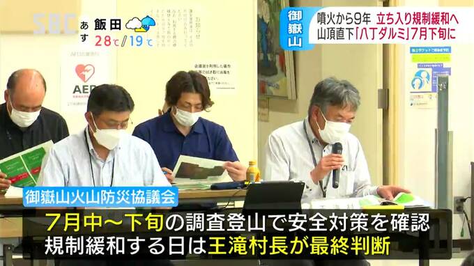 規制を緩和する日は協議会のメンバーが7月中旬から下旬にかけて調査登山を行い、安全対策を確認した上で王滝村長が最終判断するということです。