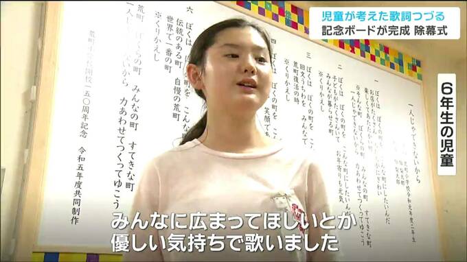 開校150周年を迎える仙台市立荒町小学校で、児童が考えた歌の歌詞を綴った記念のボードが作られ、除幕式が行われました。