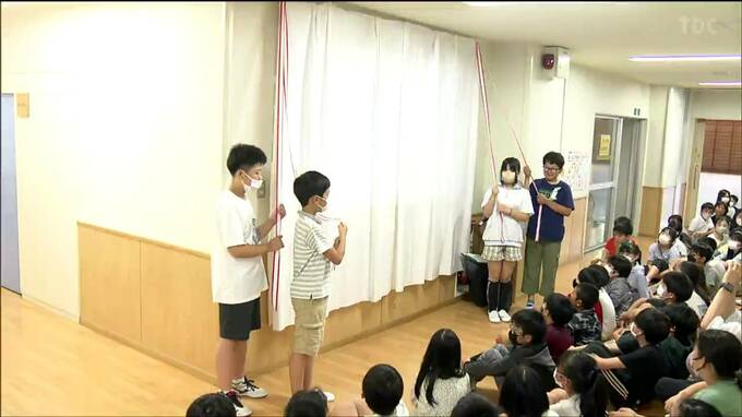 除幕式には、仙台市立荒町小学校の6年生95人が参加しました。