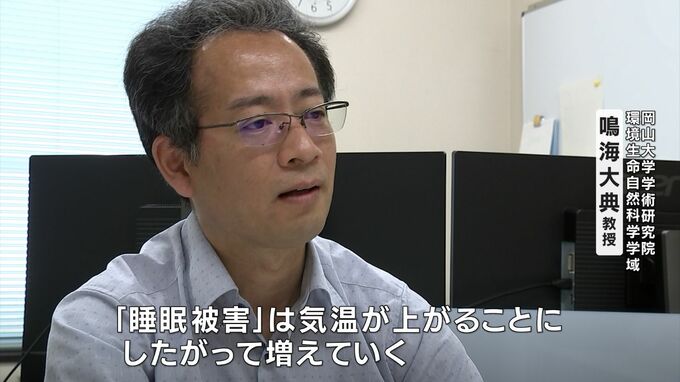 睡眠不足には様々な背景がありますが、これからの時期、夜の暑さが睡眠に大きく影響してくるといいます。岡山大学で「気候変動による影響や適応策」について研究する鳴海教授です。