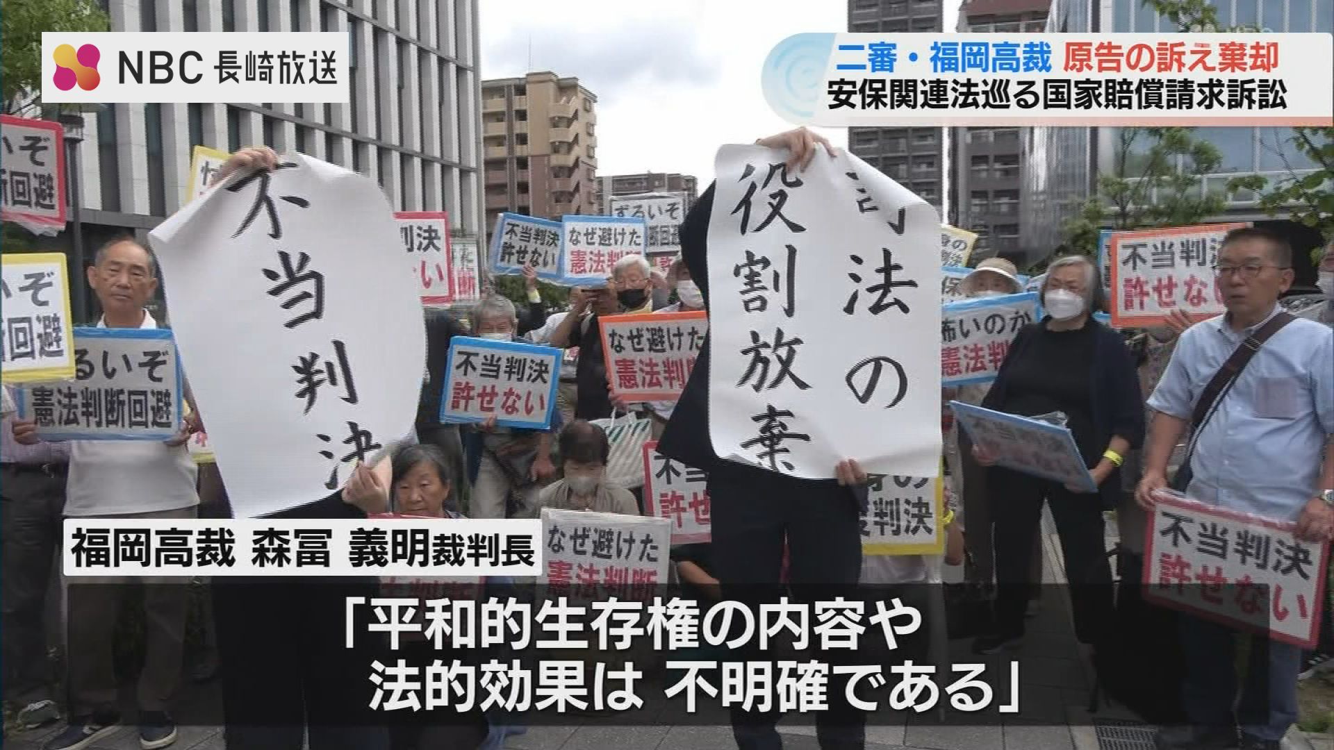 「安全保障関連法は憲法違反」として、長崎の被爆者らが国に損害賠償を求めている裁判の控訴審で、福岡高裁は一審判決を支持し、原告の訴えを棄却しました。