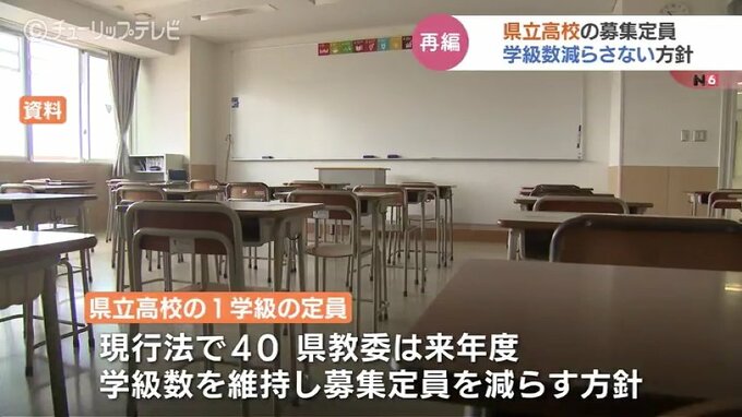 富山県県教育委員会は27日までに、来年度の県立高校の募集定員について学級数を減らさず少人数学級とする方針を固めました。県立高校1学級あたりの定員は現行の法律で40人と定められていますが、県教委は来年度、…