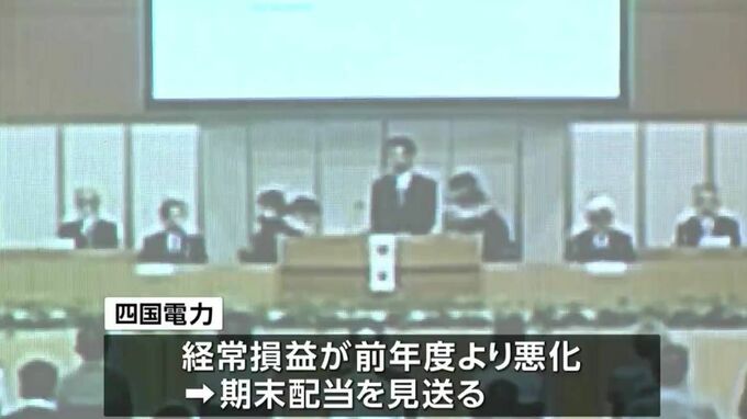 四国電力の株主総会が開かれ、会社側は経常損益が前年度より増えたことなどから、前年度の期末配当を見送ると報告しました。