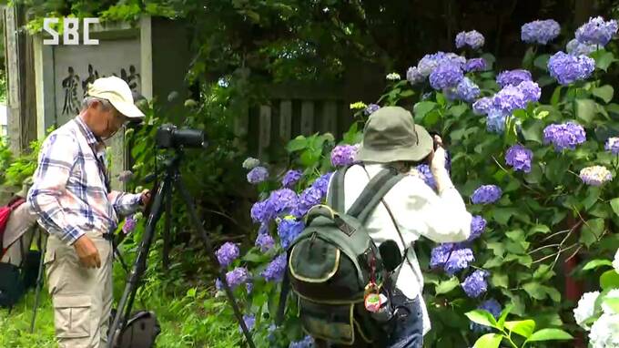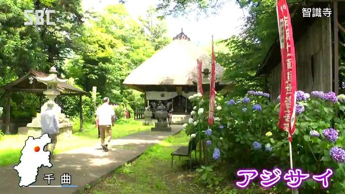 千曲市の智識寺(ちしきじ)と隣接する公園では、梅雨の時期に咲く花=アジサイが見頃を迎えています。