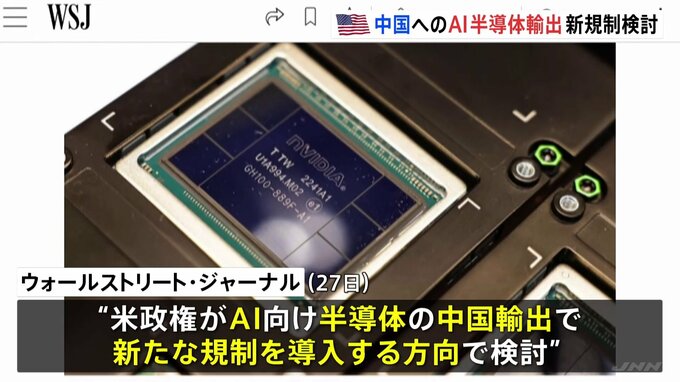 アメリカがAI=人工知能に使用する半導体の中国への輸出について、新たな規制の導入を検討しているとアメリカメディアが報じました。アメリカのウォールストリート・ジャーナルは27日、バイデン政権がAIに使用する…