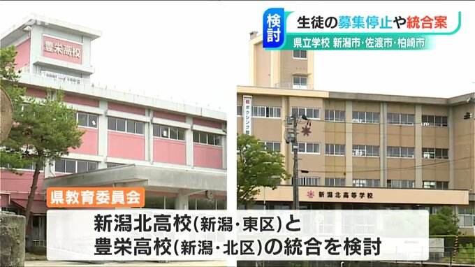 新潟県教育委員会が佐渡市と柏崎市にある中高一貫校で生徒の募集を停止し、新潟北高校と豊栄高校を統合する案を検討していることが分かりました。