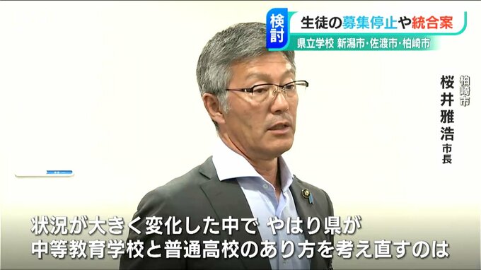 【柏崎市桜井雅浩市長】「少子化が進んでいるということ、それから志向が変わってきているということも含めて状況が大きく変化する中でやはり県が中等教育学校と普通高校の在り方を考え直すのは、私はしかるべきと思う」