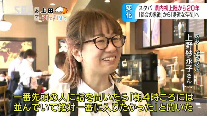 コーヒーチェーンのスターバックス、長野市にオープンした県内1号店が、27日、開店20周年を迎えました。