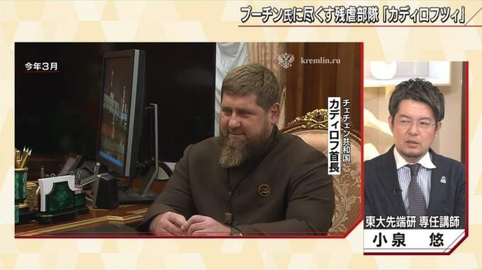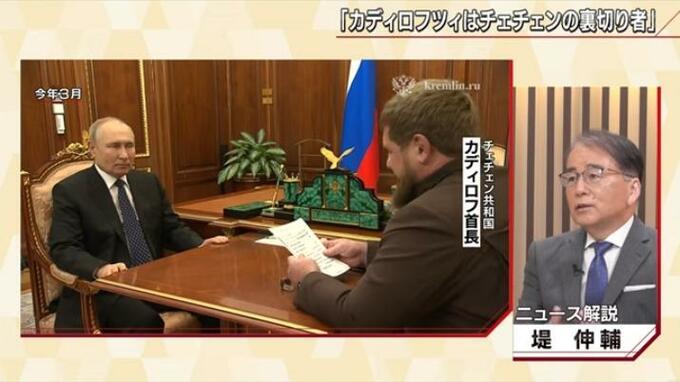 「実はカディロフという人は自分のまだ10代くらいの3人の息子を連れてきて、愛国者でロシアのために戦ってますっていう姿を見せましたが、実は自分や自分の家族は安全なところでスタンドプレー的に戦っているフリをしている。これはかつてチェチェン独立のために戦った人たちから見れば許せない。それこそ裏切者としか思えない」