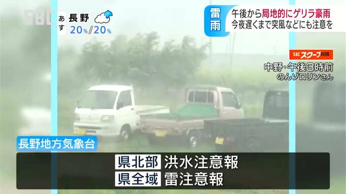 長野地方気象台は、県北部に洪水注意報、県内全域に雷注意報を出し、28日の夜遅くにかけて落雷や激しい突風、急な強い雨やひょうに注意を呼び掛けています。