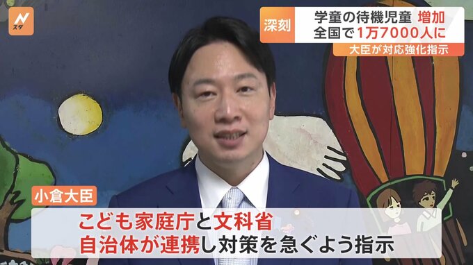 小倉こども政策担当大臣は、学童保育の利用ができず待機児童となっている小学生が全国で1万7000人に上ることを明らかにし、待機児童解消に向けた取り組みを強化する方針を示しました。きょう午後、小倉大臣は東京…