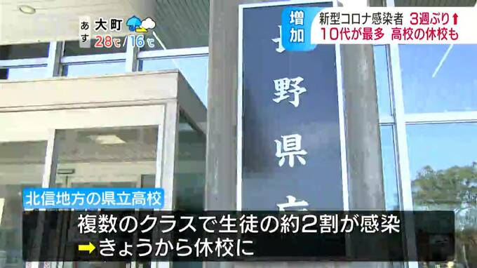 このほか、北信地方の県立高校では、生徒のおよそ2割が感染したとして、28日から休校となっています。