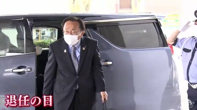 梅雨の合間に熱い日差しが差し込んだ退任の日。三村知事は、普段と変わらない表情で午前10時前に県庁に登庁しました。
