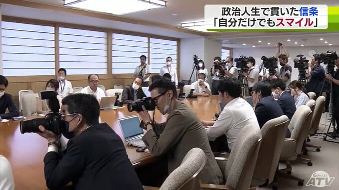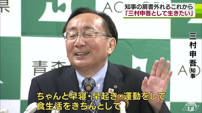 ※三村知事「ちゃんと早寝・早起き・運動をして食生活をきちんとして健康を自ら示すことが必要だと思っている。三村申吾個人として生き足りなかった部分をもう一度ちゃんと生きていきたい」