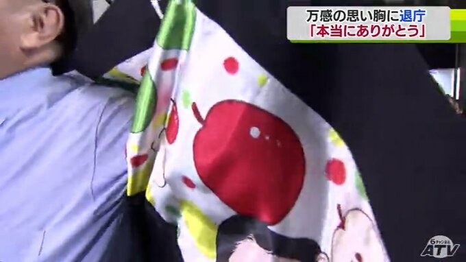 最後に、三村知事が披露したのは自身のトレードマークだった県産品が描かれたスーツを脱いで掲げるというパフォーマンスでした。