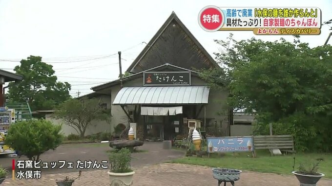 7年前に開業した「道の駅みなまた」に隣接するレストラン「石窯ビュッフェたけんこ」。お昼時には熱々の麻婆豆腐に旬のゴーヤを使ったチャンプルーなど地元の食材を中心に作られたおかずの数々が並びます。