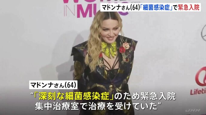 アメリカの人気歌手マドンナさん(64)が“「深刻な細菌感染症」のため緊急入院し、集中治療室で治療を受けていたこと”がわかりました。マドンナさんのマネジャーが明らかにしたもので、「現在は回復に向かってい…