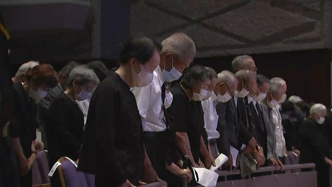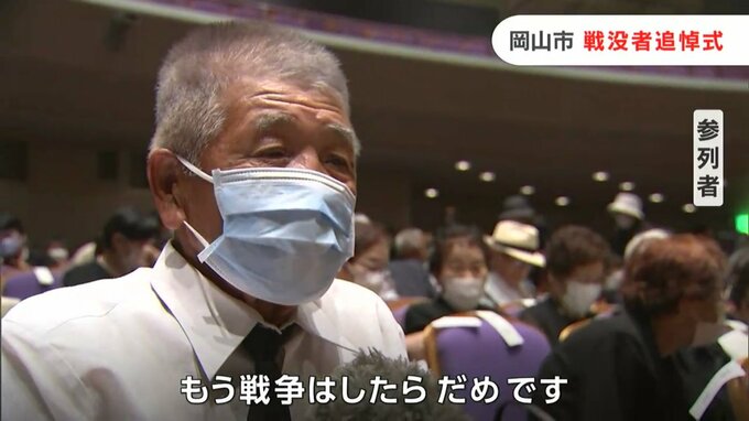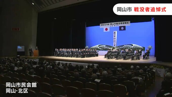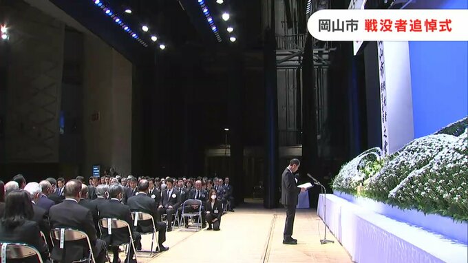 空襲で亡くなった人や戦地で亡くなった犠牲者の冥福を祈り、黙とうを捧げました。岡山市民会館で行われた岡山市戦没者追悼式です。