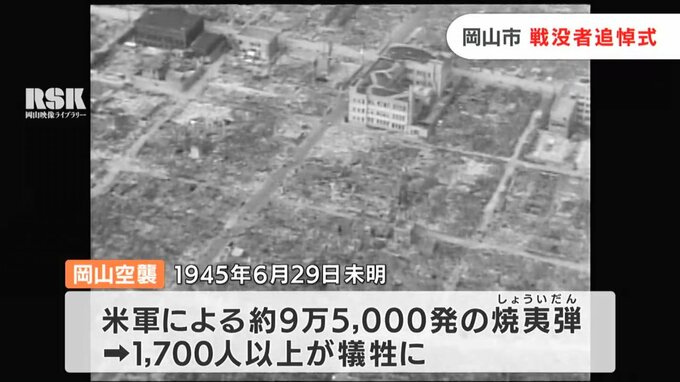 1700人あまりが犠牲になった岡山空襲からきょう(29日)で78年です。戦争で亡くなった人を追悼する式典が岡山市北区で開かれました。