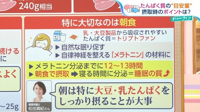 「朝は特に大豆・乳たんぱくをしっかり摂ることが大事」だと話しています。