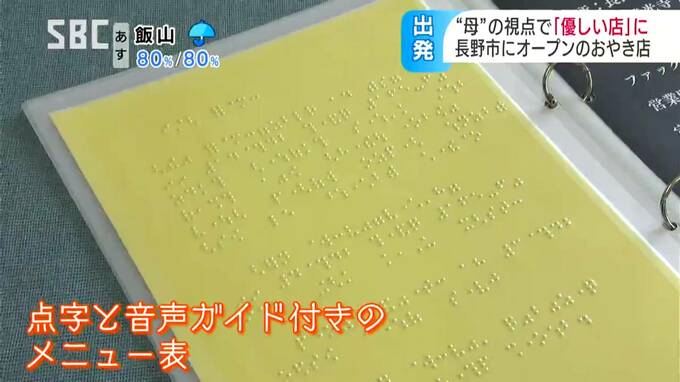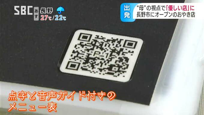 さらに、ゆっくりとメニューを見ながら商品を選べるように、点字とQRコードを使った音声ガイド付きのメニュー表も用意しています。