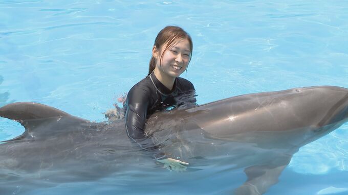 愛知県美浜町の南知多ビーチランドで、7月から始まる体験型イベントのリハーサルの様子が公開されました。飼育員に抱っこされて気持ち良さそうなイルカ。7月に愛知県美浜町の南知多ビーチランドで始まる体験型イベ…