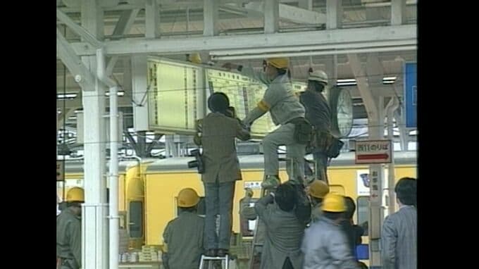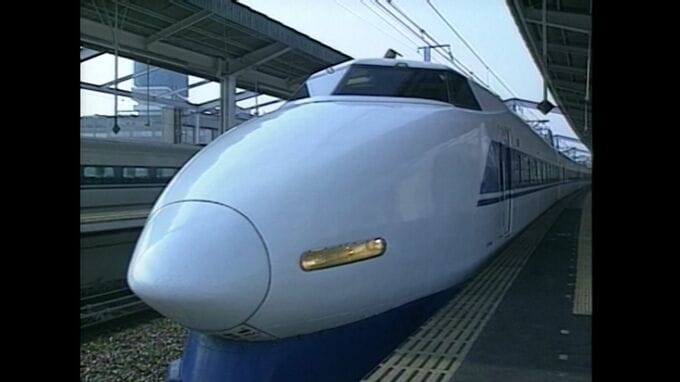 そしてなぜか、【画像⑫⑬】のような新幹線100系の姿もダイヤ改正当日のニュース映像に残されていました。この日から2階建て車両を4両連結したグランドひかりが増発。また岡山と東京・新大阪間のスピードアップが図られたということです。
