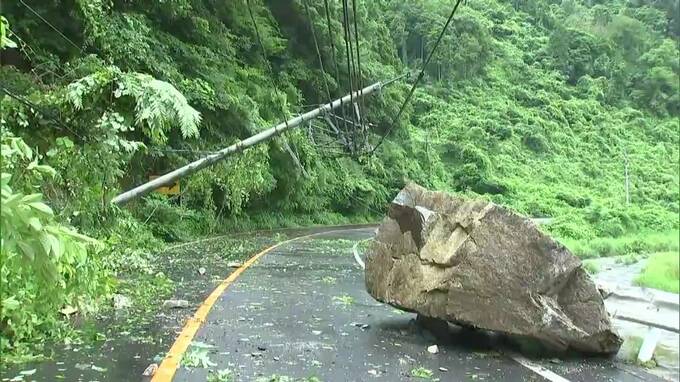 警察によりますと、落石は直径2メートルほどで、近くの電柱がなぎ倒されたような状態になっていて、ガードレールも一部損傷していました。けが人はいないということです。