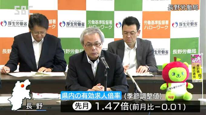 長野県内の5月の有効求人倍率は1.47倍で、2か月連続で低下しました。