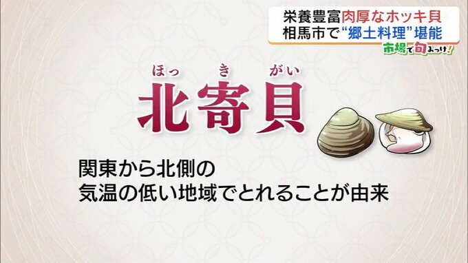 旬の魚や果物、花などを市場の担当者に紹介してもらう「市場で旬みっけ!」。今回は、福島県内でも水揚げが盛んなホッキ貝です。