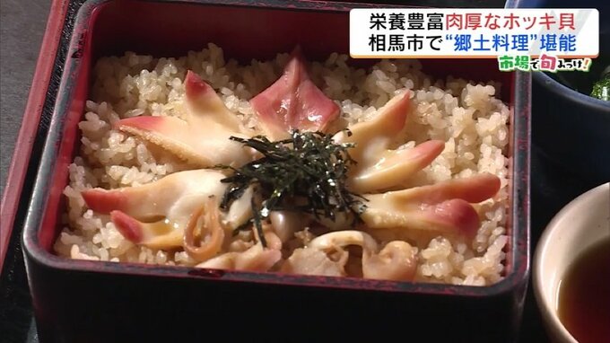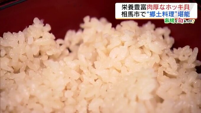 栄養価が高い「ホッキ貝」。相馬市では、日常的に食べるなじみの食材で特に「ホッキ飯」は郷土料理として親しまれています。松川浦にある「お食事処たこ八」でもホッキ飯は一番人気です。