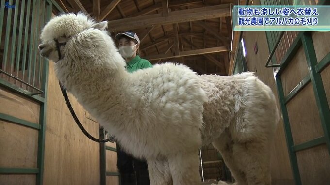 岩手県八幡平市の観光農園で飼育されているアルパカの毛刈りが進んでいます。本格的な夏の到来を前に、涼しい姿へ衣替えです。 アルパカの毛刈りが行われているのは、八幡平市の観光農園・サラダファームヴィレッ…