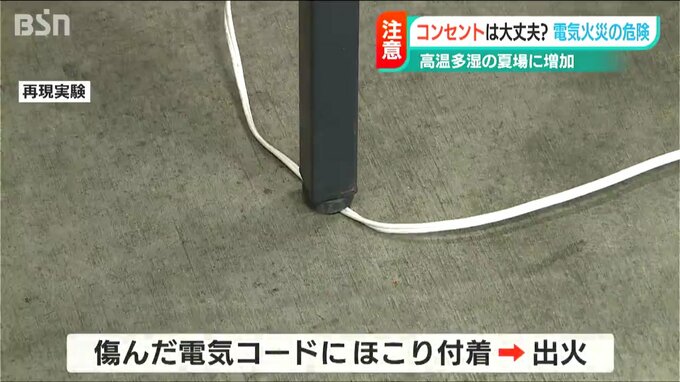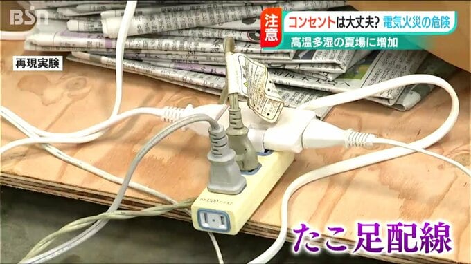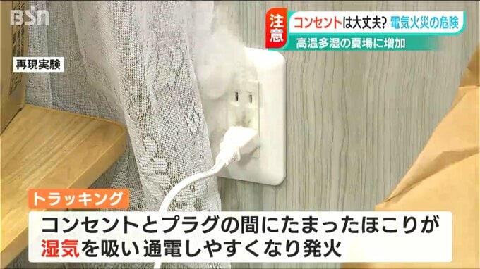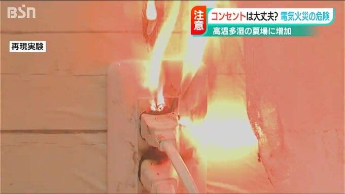『トラッキング』と呼ばれる現象によるものです。ご家庭のコンセントは大丈夫でしょうか?新潟市消防局が再現実験を公開しました。